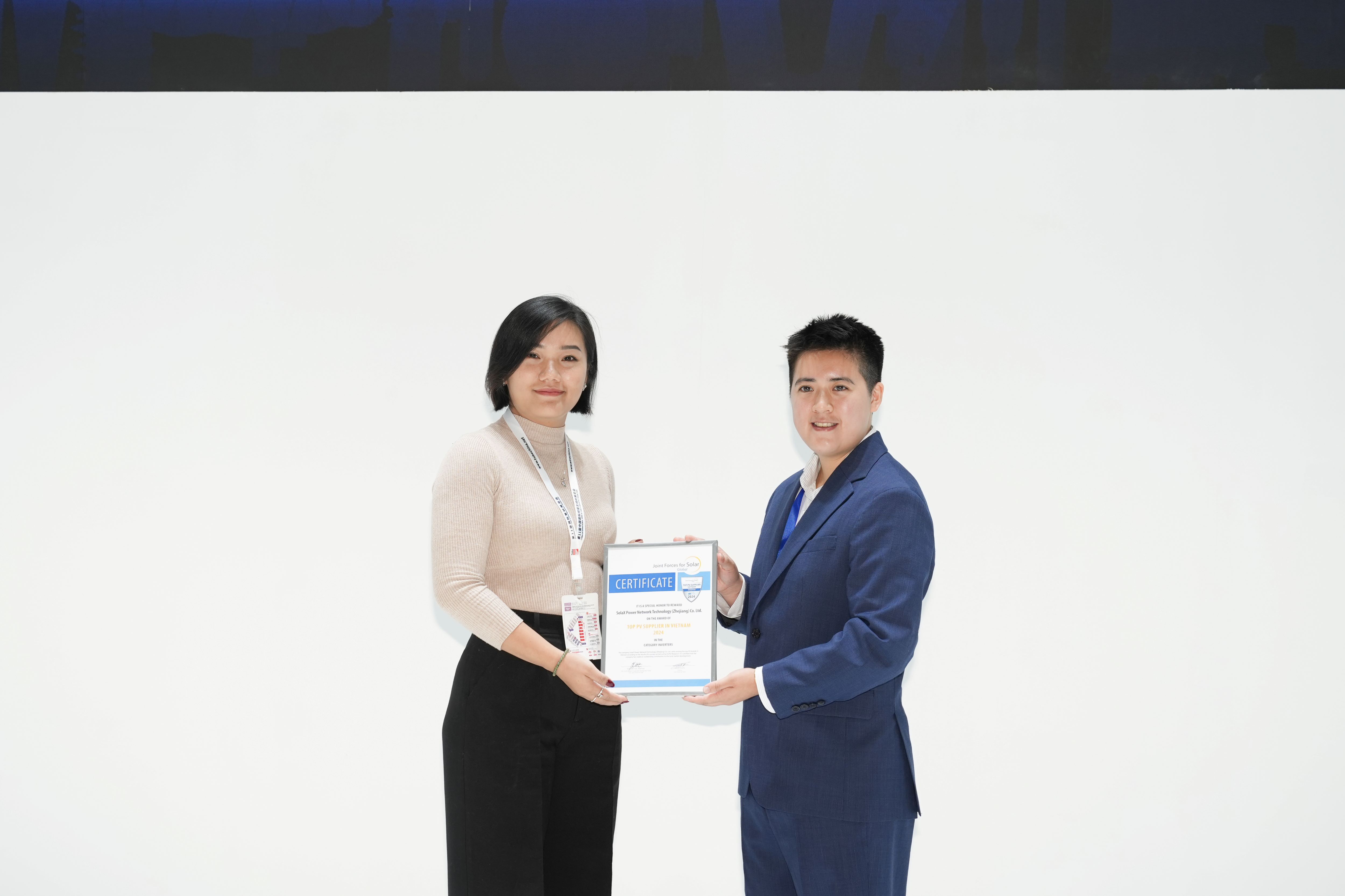 本次展会上,艾罗能源展台前人潮涌动。我们不仅带来了最新的光伏和储能产品,还有丰富的互动体验环节。EUPD Research亚太区总监Chi-Han Yang女士亲临现场为我们颁奖,并高度肯定了我们的技术创新和市场表现!